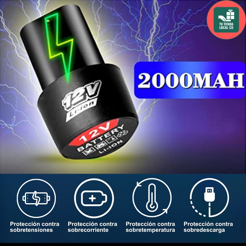 🔋 Baterías Duraderas: Incluye 2 baterías de 2000 mAh para hasta 40 minutos de uso continuo por batería.